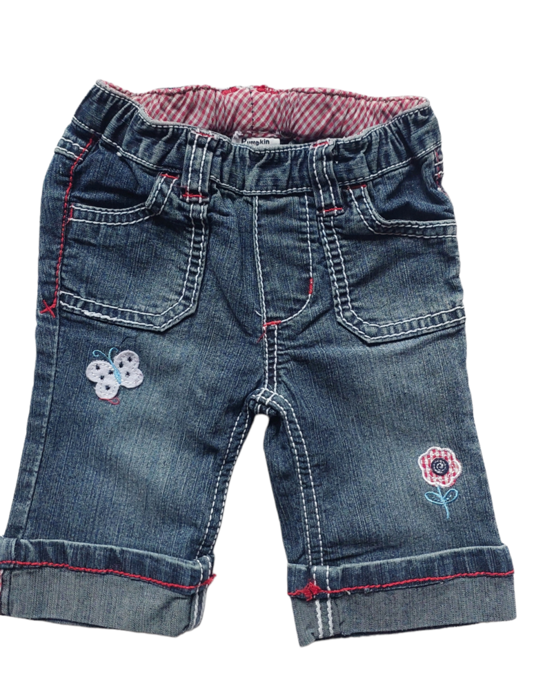 0-3 mths Cropped Jeans with Butterfly and Flower Y2K