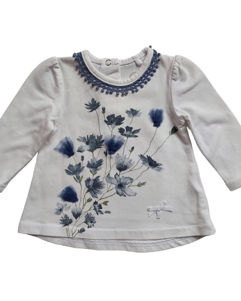 6mths White with Flowers LS Top