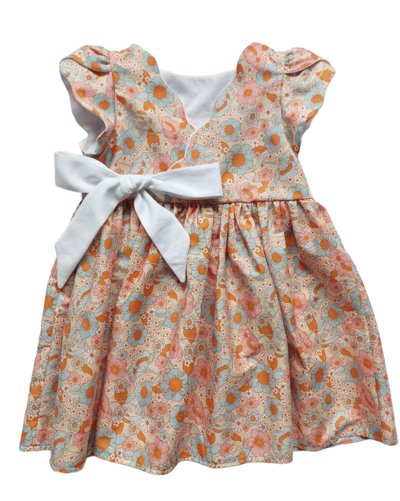 This was a custom made Belle dress with supplied fabric. Worn once for a photoshoot. Like new. Beautifully made. Apricot, orange, pink, light blue and white colours. Normal retail $55