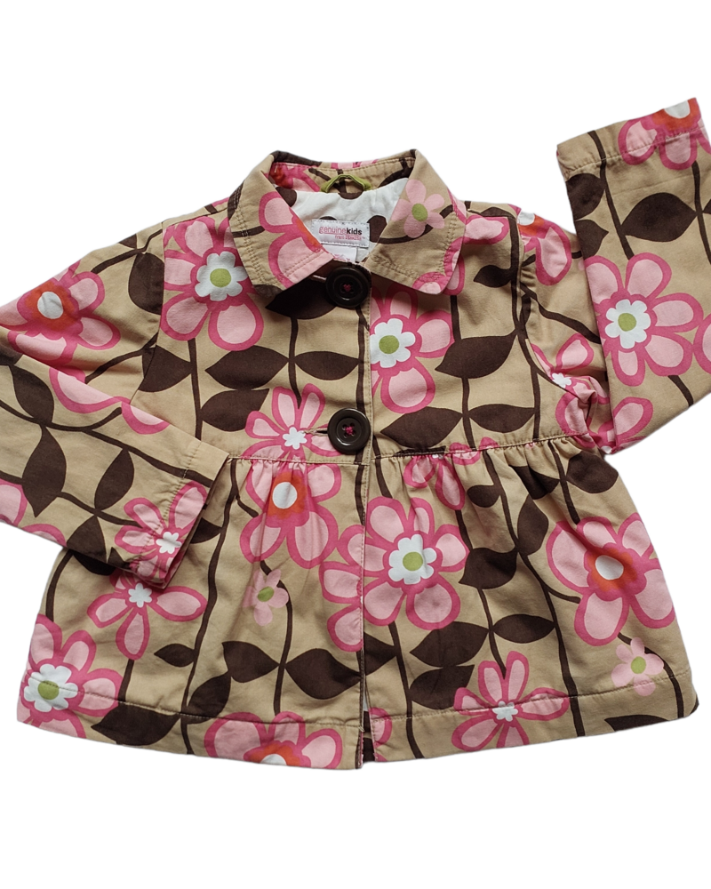 Lined with cream with brown polka dots. Green, pink, brown, orange and cream colours. Bold and detailed design.