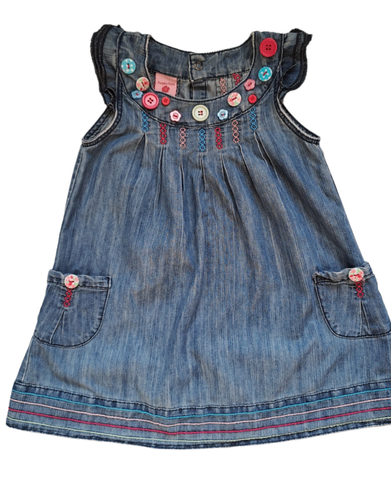 So much detail from chain stitching, frilled capped sleeves, pleated front and buttons for decoration.