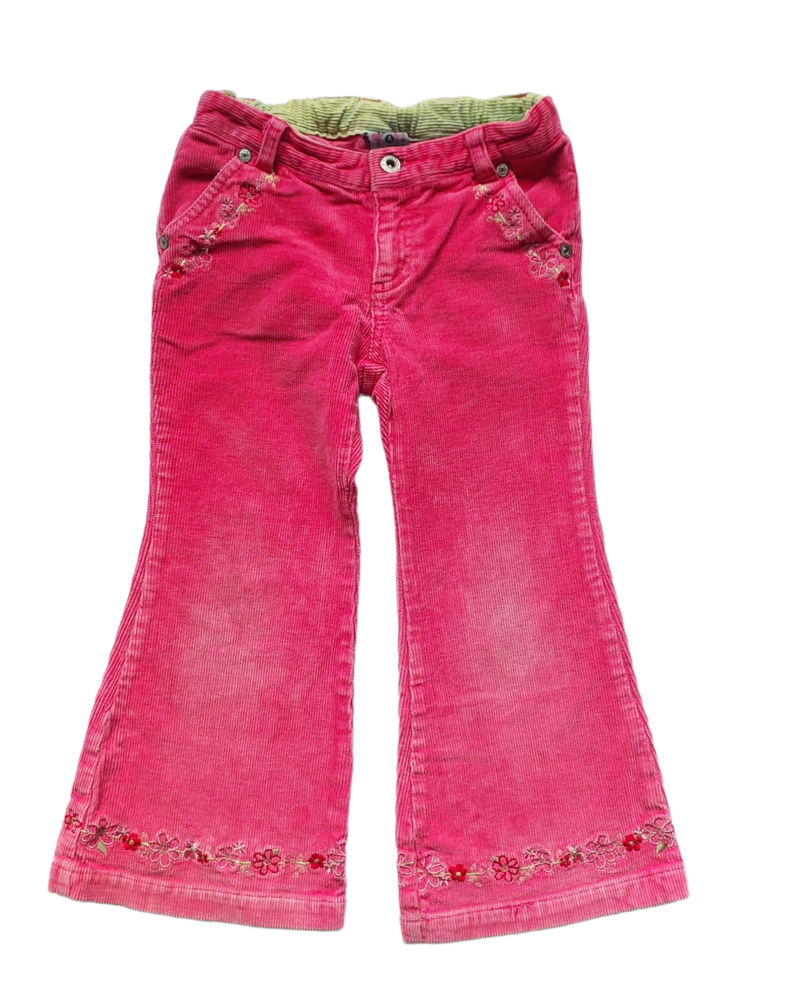 Adjustable waist. Zip and button fly. Domed back pockets. Floral embroidery in pink, green and red. Typical PP quality of this era.