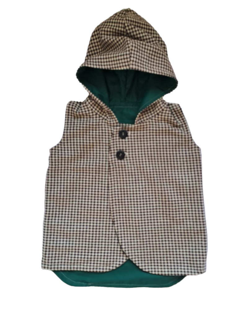 Houndstooth outer pattern in green/brown/neutral grey blue.