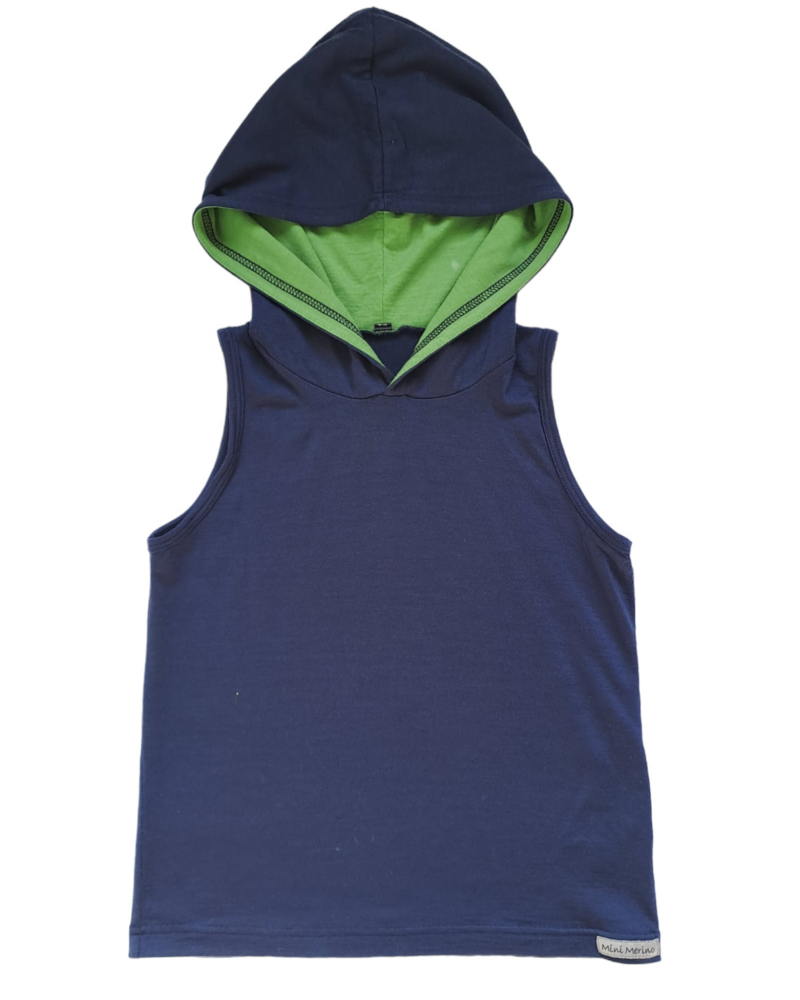 Size 7/8 Navy Merino Sleeveless Hoodie